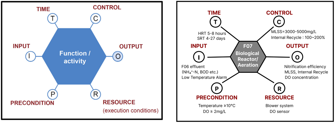 전환, ②FRAM 6요소(Input, Output, Precondition, Resource, Control, Time)를 하수처리 공정의 엔지니어링