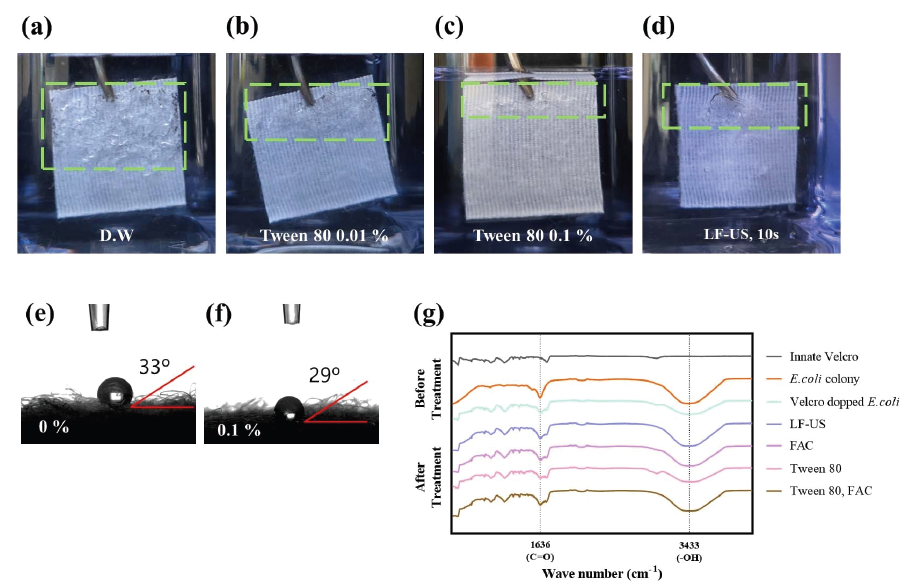 방식으로 적용하고, 각 소독 효율을 체계적으로 비교⋅평가하였다. 더불어, 접촉각(contact angle) 측정과 퓨리에 변환 적외선 분광기(Fourier-transform