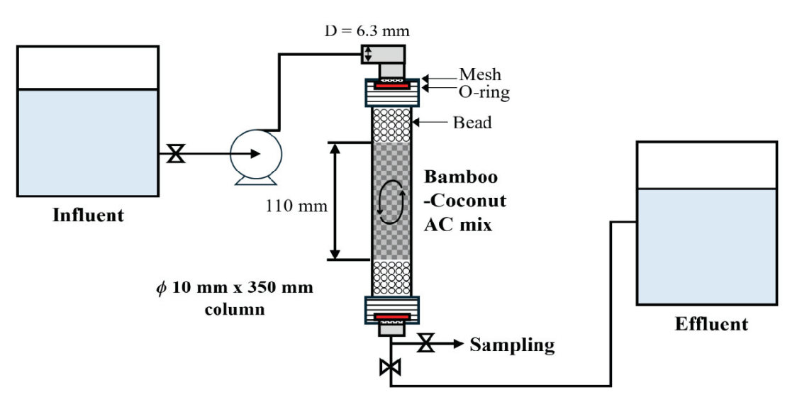 바이오매스 기반 활성탄 2종의 최적 혼합비율을 도출하여 급속 소규모 컬럼실험(rapid small-scale column test, RSSCT)을