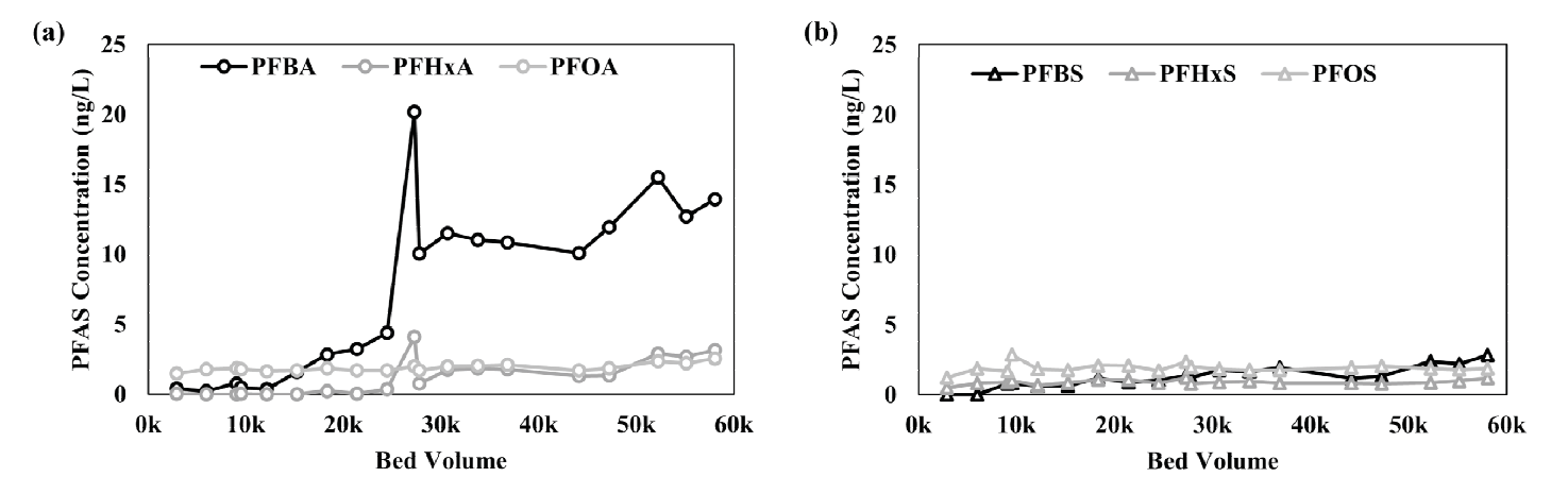 PFAS 제거율은 90% 이상으로 현재 정수장에 도입되어 있는 공정 중에서 PFAS를 제거하기 위한 가장 현실적이고 경제적인 해결 방안이다. 그러나