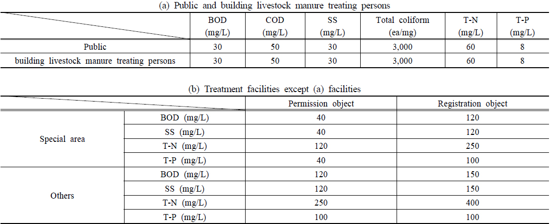 Effluent water quality limitations of livestock- manure treatment facilities in Korea