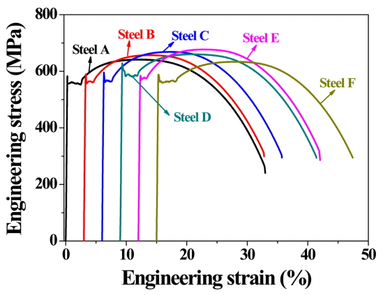 Schematic diagram of engineering stress-strain curves to explain the correlation between