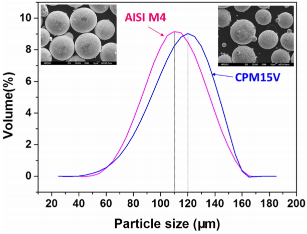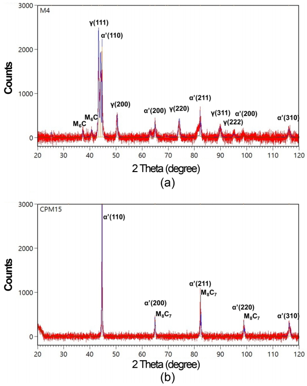 ๊ฒฝํ์ธต์ ํ์ฑํ๋ ๊ธ์ ๋ถ๋ง๋ก๋ ๊ณ ์๊ฐ์ค๋ถ๋ฌด(Gas atomization) ๋ฐฉ์์ผ๋ก ์ ์กฐ๋ AISI M4(supplied by Carpenter Co.)๊ณผ