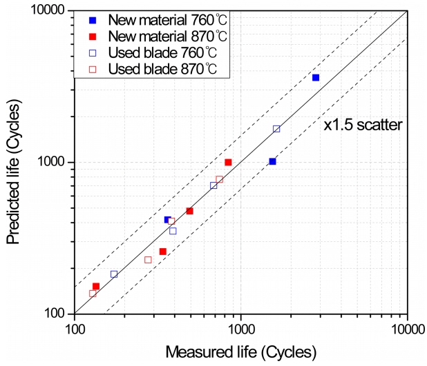 따라서 실제 장시간 운전된 블레이드 소재에 대한 열화 정도와 잔여 수명의 정확한 예측은 터 가스터빈의 블레이드의 사고 예방 및 부품의 교체주기를 파악할