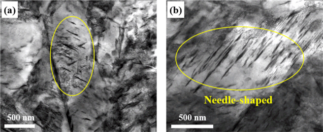 시편 내 존재하는 미세석출물의 형상관찰 및 분석을 위해 thin foil로 제작한 시편을 투과전자현미경 (Transmission electron microscope,