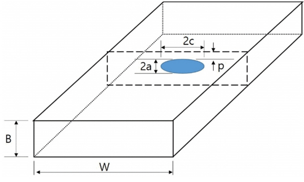 그림 17과 같이 재열 균열을 고려하여 내부 균열(embedded flaw)로 정의하였고, 그 외 용접부의 기계적 특성은 실험 결과를 그대로 반영하였다. 적합성