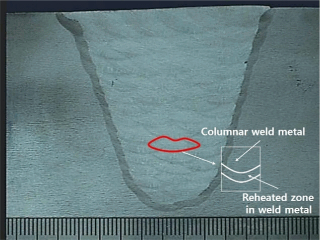 저온 균열에 대하여도 보고되고 있다 [10,11]. 그러나, YP690 MPa급 강의 FCAW 다층 용접부에 있어, 후행 패스의 열이력에 의하여 선행 패스의 일부분이 재가열 되어 발생된 재열 영역(reheated