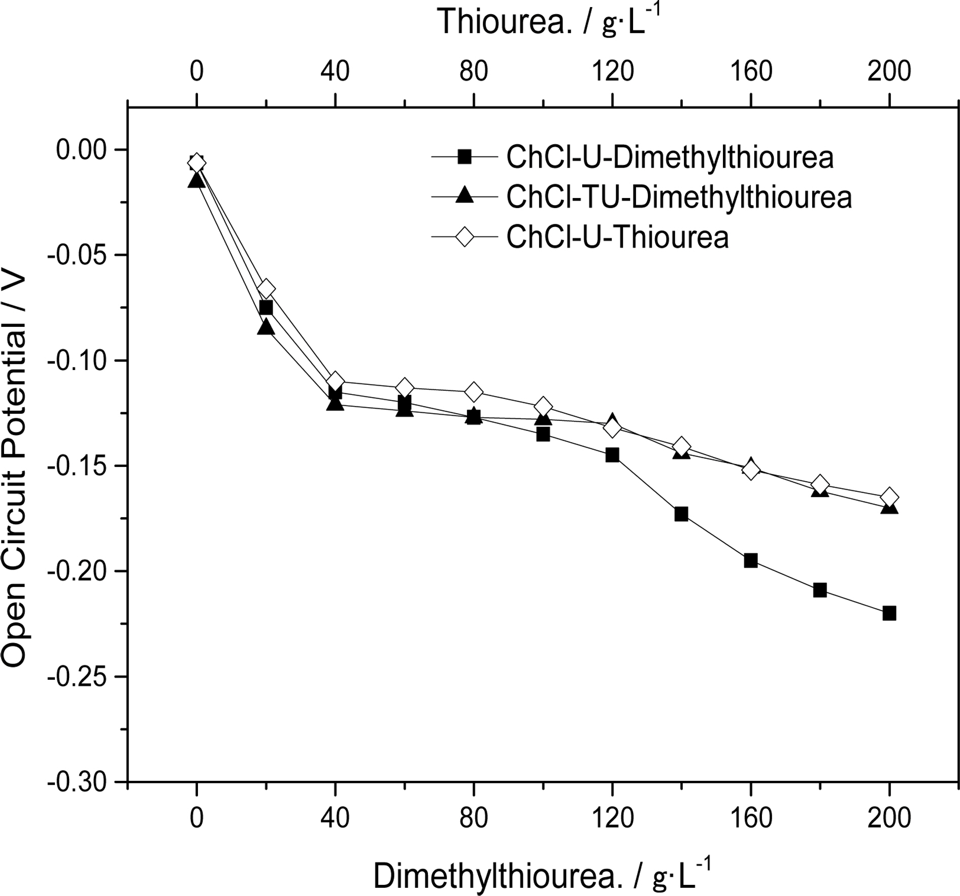 and dimethylthiourea resulted in decreased electrolyte OCP values. More specifically,