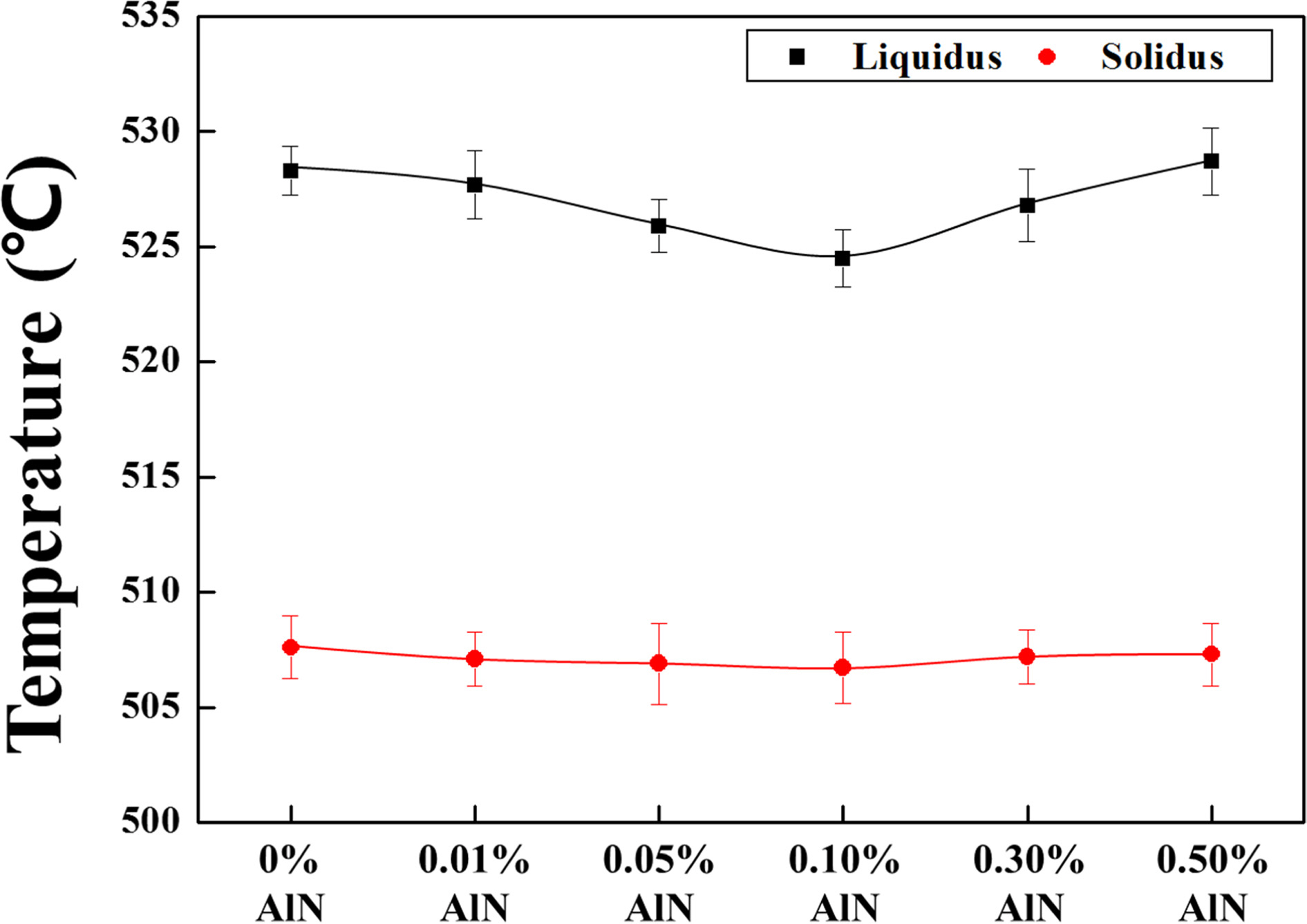 (2) The liquidus point of the 0% nanosized AlN powders in the filler was approximately