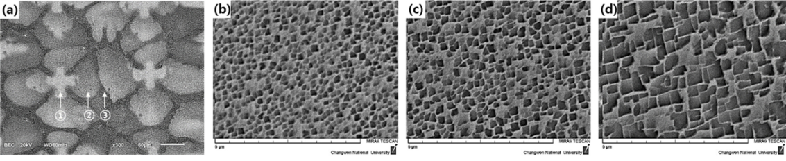 primary dendrite core, (c) secondary dendrite, and (d) interdendritic region.