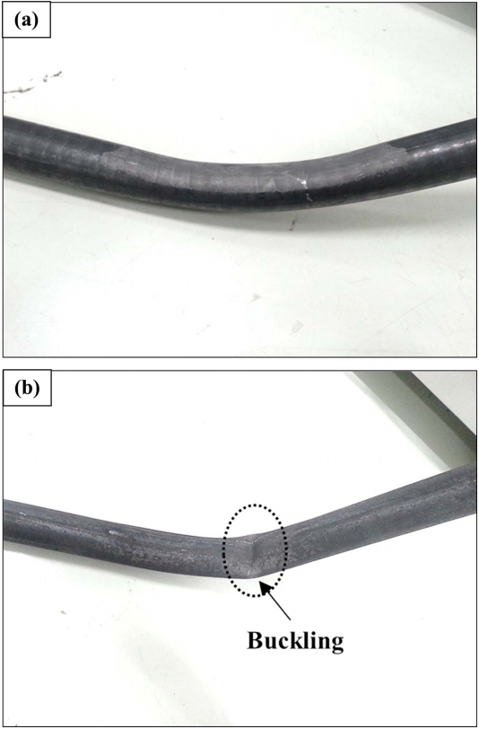 ์ข๊ตด ์์ด ๊ท ์ผํ๊ฒ ๋ณํ๋์์ง๋ง, 22MnB5 ๋์ด ์ํฉํธ๋น์ ์ฝ 66.4 mm ๋ณํ ์์ ์์ ์ข๊ตด์ด ๋ฐ์ํ์ฌ ๋ฐ๋ ฅ์ด ๊ฐ์ํ๊ณ ๋ณํ๋์ด ์ฆ๋๋์๋ค