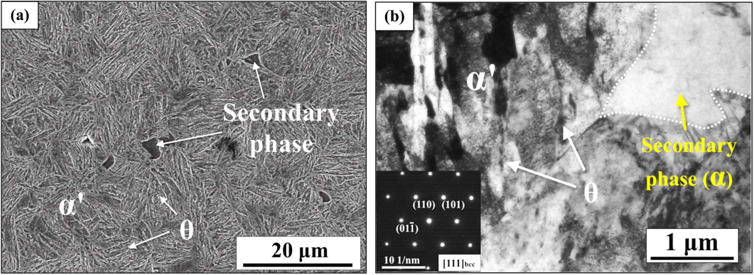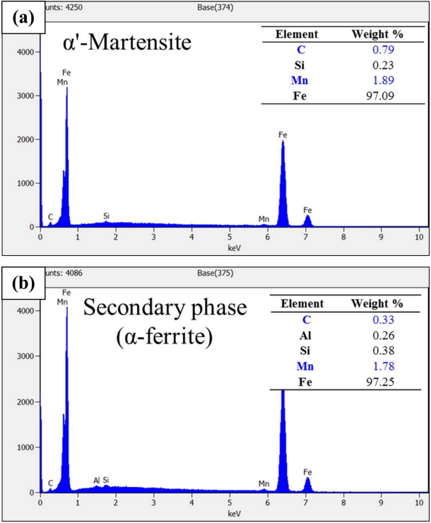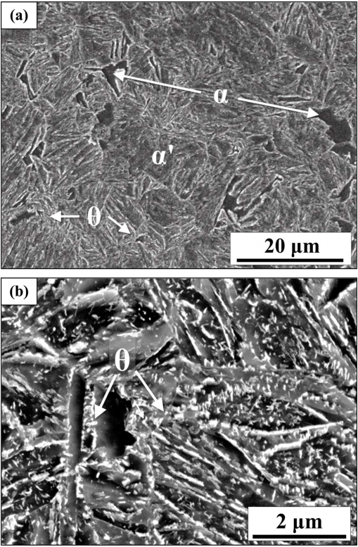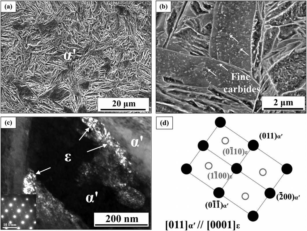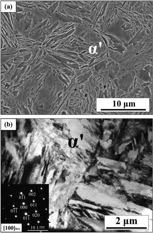 ํซ์คํฌํ ์ด์ฒ๋ฆฌ ์ 30MnB5 ๊ฐ์ ๋ฏธ์ธ์กฐ์ง์ ํ๋ผ์ดํธ์ ํ๋ผ์ดํธ๋ก ๊ตฌ์ฑ๋์ด ์๊ณ (๊ทธ๋ฆผ 2), ํซ์คํฌํ ์ด์ฒ๋ฆฌ ์งํ 30MnB5 ๊ฐ์ ๋ฏธ์ธ์กฐ์ง์ ฮฑโฒ-๋ง๋ฅดํ