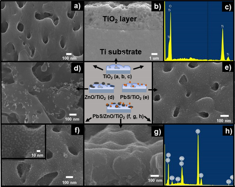 For this purpose, TiO2 photocatalyst was prepared by the MAO process, and then a ZnO-deposited TiO2 layer was fabricated. Finally, PbS quantum dots (QDs) were deposited directly on
