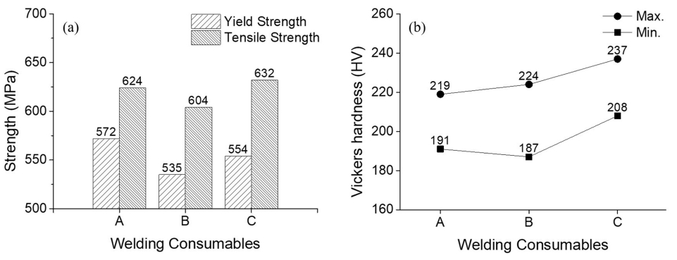 Welding conditions to check hot crack resistance and mechanical properties