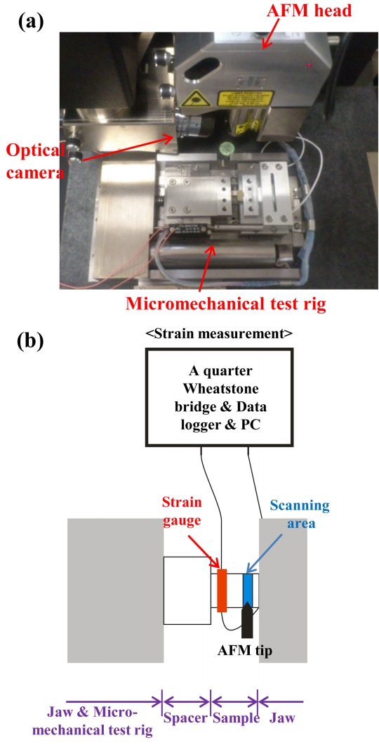 A micromechanical test rig (Deben Ltd.) was fixed to the AFM sample stage controller
