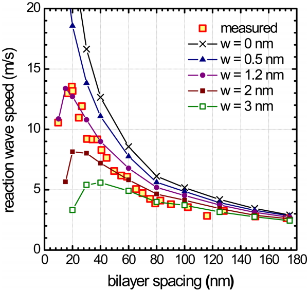 critical bilayer spacing, which resulted in a maximum reaction wave speed of 13.4