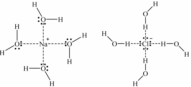 The interaction of Na+ and Cl− ions by water in solution [25].