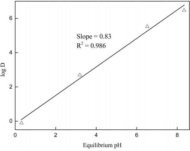 Plot of log D vs equilibrium pH. Experimental condition: [NaCl] = 0.1 M, O:A = 1:1,