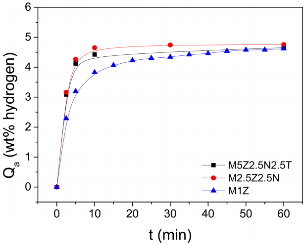 order by M5Z2.5N2.5T and M1Z. M2.5Z2.5N absorbs 3.13, 4.75, and 4.96 wt% hydrogen