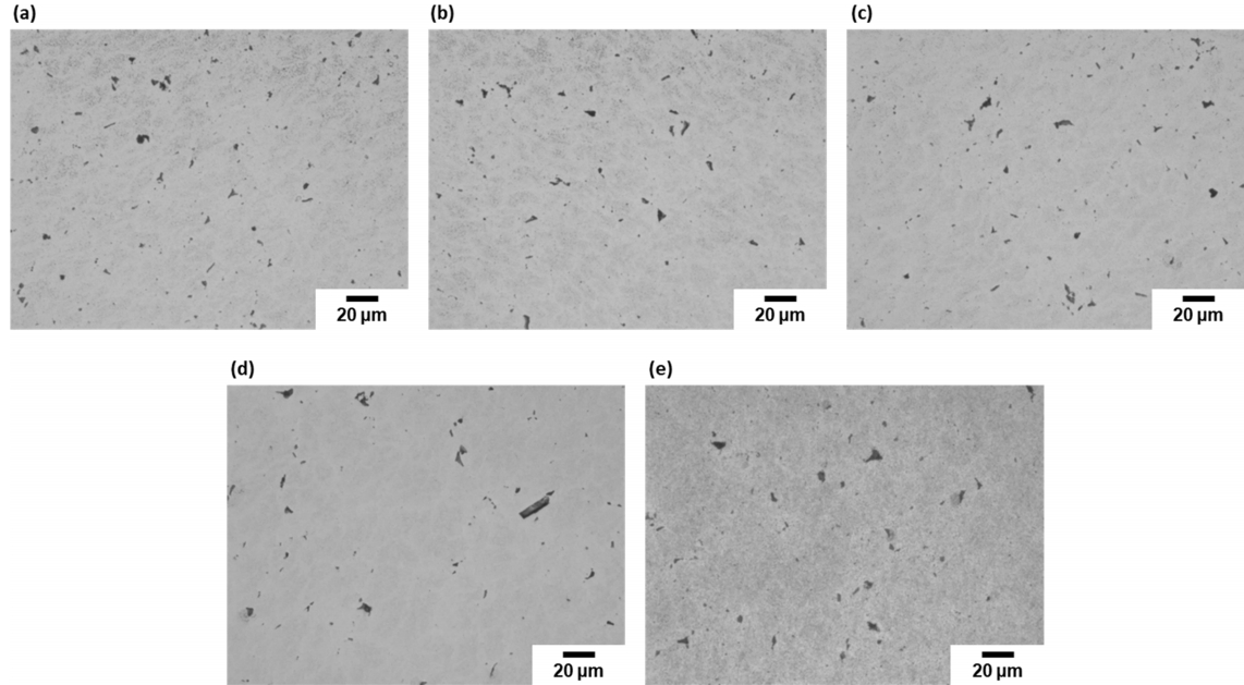 한편, 앞선 그림 3, 4의 결과와 같이 Fe 또는 Cu 를 포함하는 조대한 이차상들은 260 °C 까지는 큰 영향을 받지 않아 고온 파괴 특성과 미세조직간의 상관관계를 밝히기에는