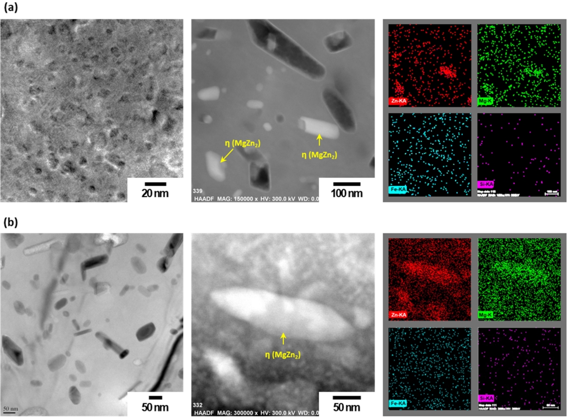 경우 상대적으로 조대한 석출상들이 분포하고 있음을 알 수 있다. 7xxx계 알루미늄 합금의 경우 고온에 노출되면 η' 또는 η phase가 기지내부로