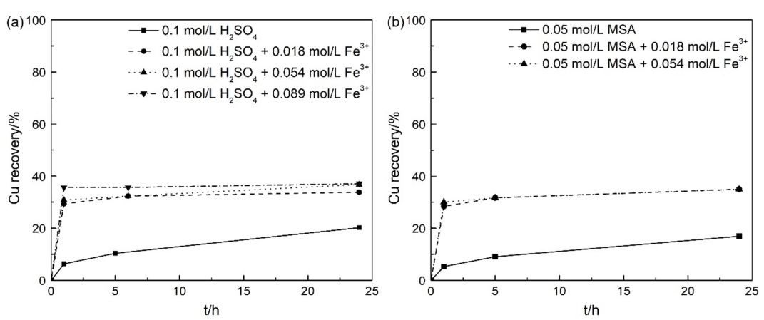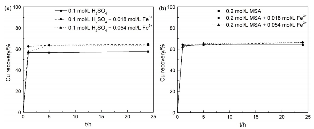 0.054 mol/L ferric ion. However, the copper recovery was not significantly affected