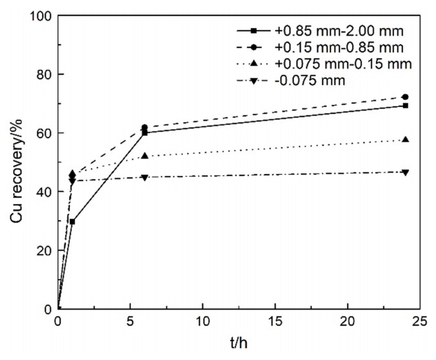 mm particles was slowest because the copper is not fully liberated, and it took time