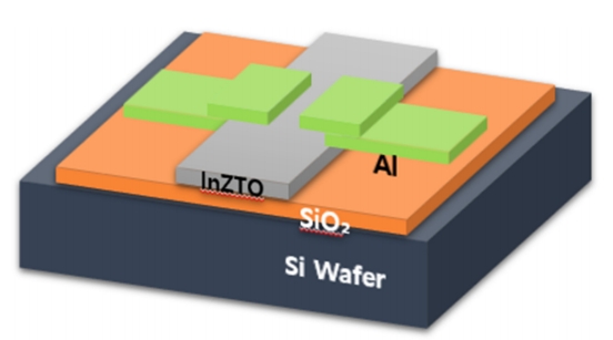 InZTO를 EHD jet의 spray 방법으로 박막을 형성하고 소스와 드레인 전극 (source-drain electrodes)을 열증착 하여 TFT를