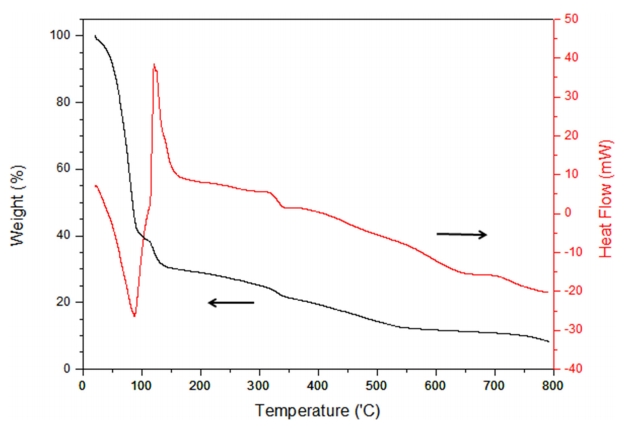 형성된 박막의 특성평가를 위하여, TG/DSC 분석과 Xray photoelectron spectroscopy (XPS, Thermo VG ESCA