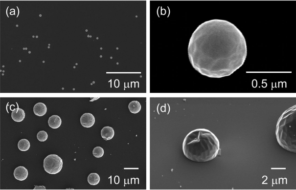 SEM images revealed round shapes, the bird’s-eye view SEM image in Fig 1(d) indicates that the microcrystals are hemispherical rather than completely spherical.