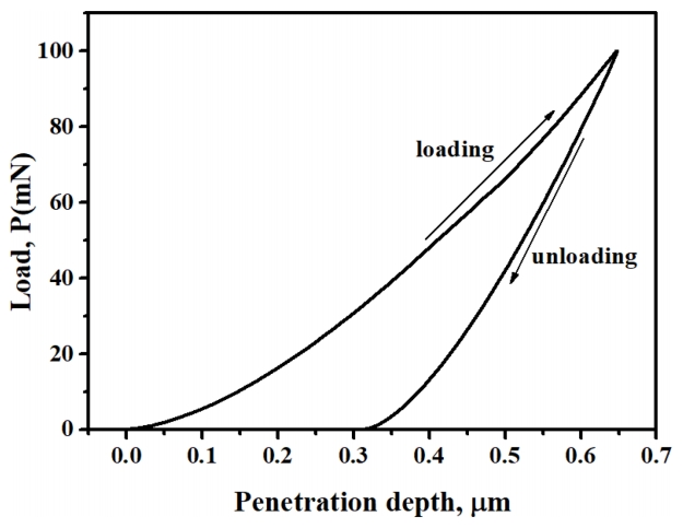 하중 적용에 따른 부하-무부하(loading-unloading) 곡선의 예를 그림 17에 나타내었다. 적용된 하중은 제거되기 전까지 탄소성 거동을 보여준다.