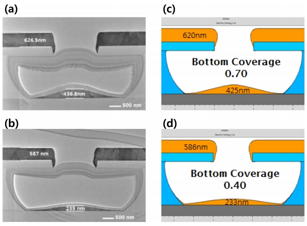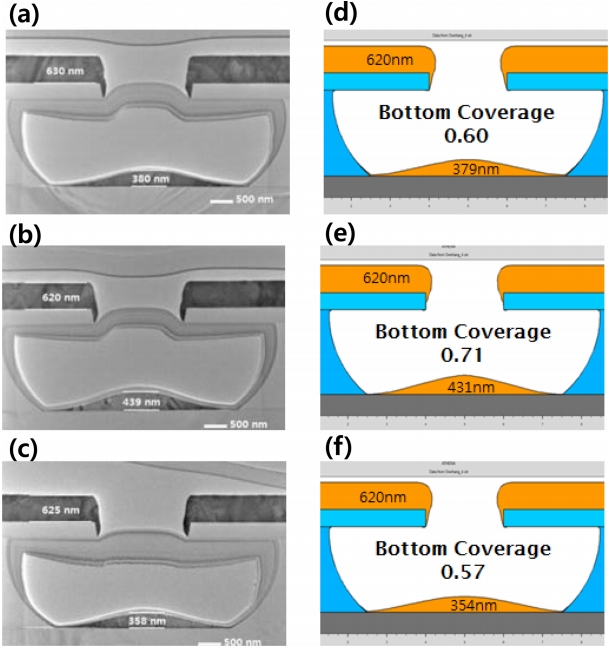 aspect ration 10 is simulated based on the optimized sputtering conditions and compared