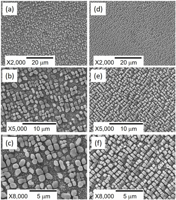 (d) are ×2000 magnification; (b) and (e) are ×5000 magnification; (c) and (f) are