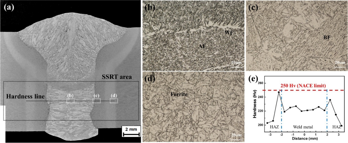 welds of low alloy carbon steels are limited to 250 HV or less [4]. In the service environment of the pipeline, because of the hydrogen produced by