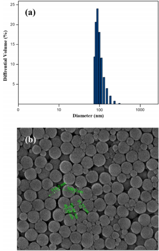 and particle size distribution at pH 9 was characterized using a zeta potential and