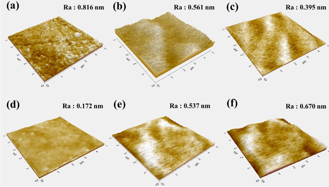 using pure N2. The surface morphology and roughness were determined using AFM (PSIA, XE-100, Korea);