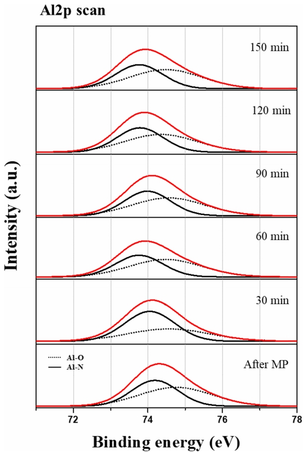 Binding energies of core level of Al2p scan.