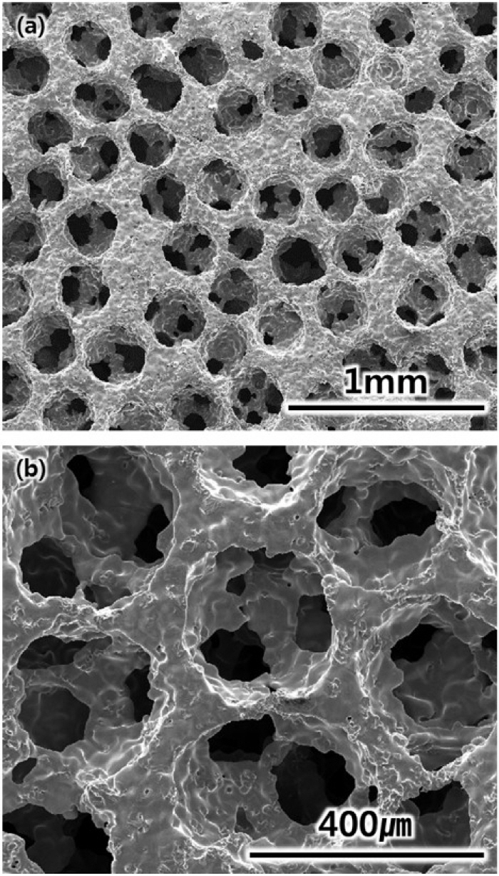 다공체 시편의 구조는 광학 실체현미경(Nikon, SMZ1000) 및 주사전자현미경(FE-SEM, FEI, Quanta200F)으로 관찰하였으며,