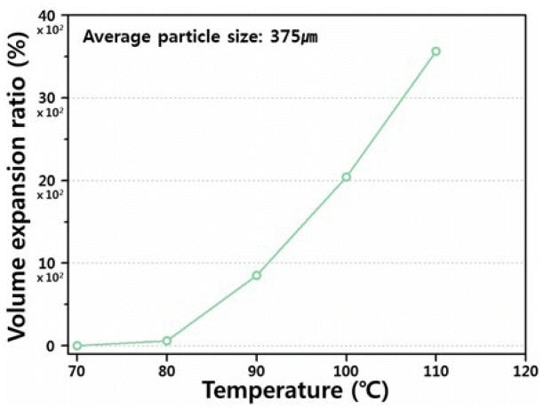 °C이상에서 는 온도에 따라 급격히 팽창하였으며 110 °C에서 3,564% 의 매우 높은 부피팽창을 나타내었다.