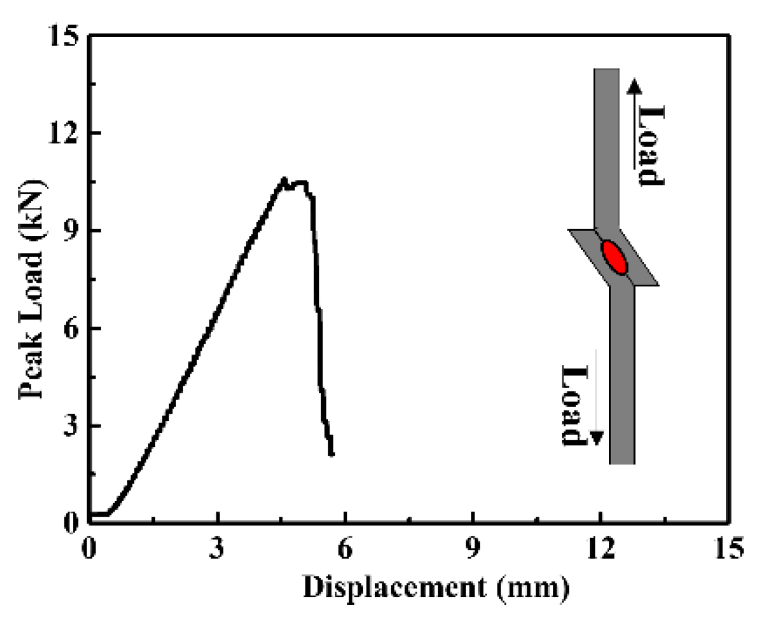 Peak load distributions of GA 1180TRIP steel after RSW with 8kA, 4kN and 18cycles.