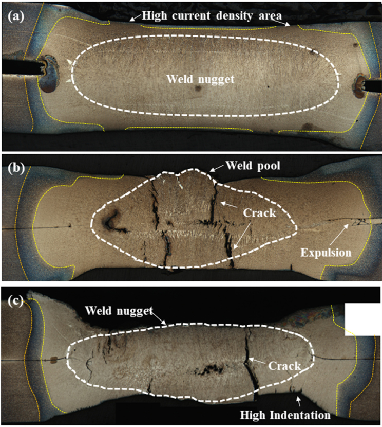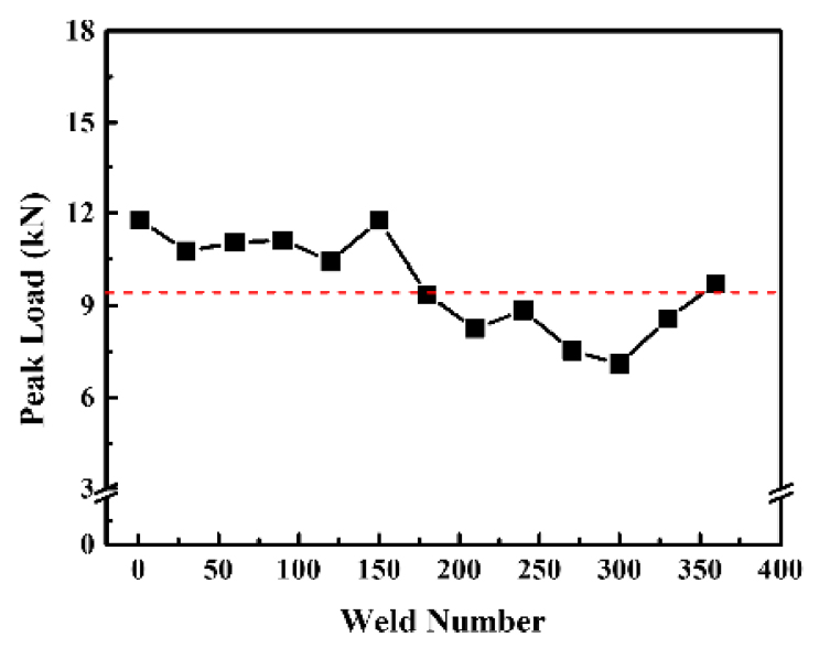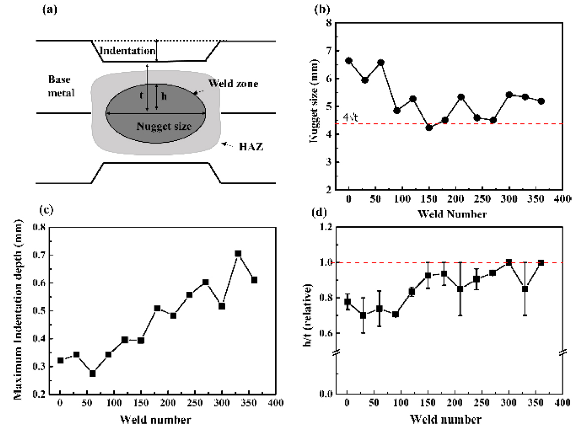 The analysis of weldability according to increasing weld number (a) Schematic of (b),