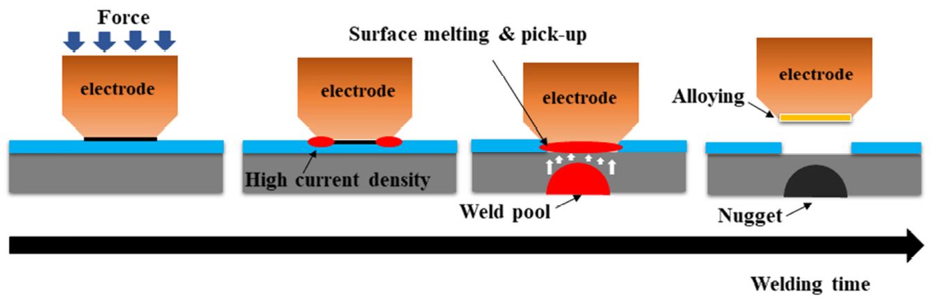 Schematic diagram of localized electrode alloying process in resistance spot welding