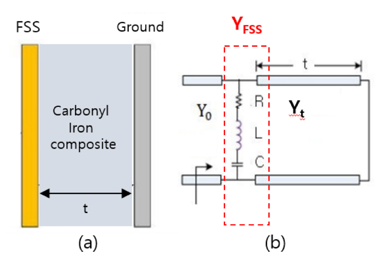 Schematic of (a) carbonyl iron composite absorber (thickness t) with FSS and (b) equivalent