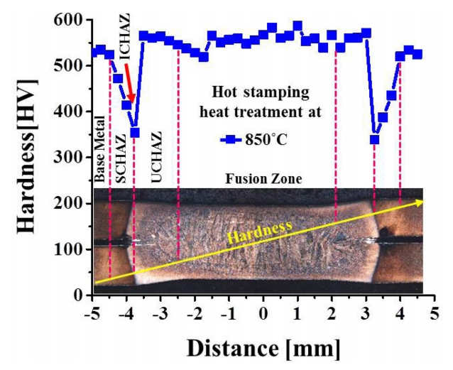 ๊ฒฝ์ฐ, ํซ์คํฌํ ์ด์ฒ๋ฆฌ ์จ๋๋ฅผ ์ต์ํ Ac3 ์จ๋์ธ 810 oC ์ด์์ผ๋ก ์ค์ ํด์ผ ํจ์ ์ ์ ์๋ค. ๋ณธ ์ฐ๊ตฌ์์๋ ์ค์ ํซ์คํฌํ ๋ถํ์์ฐ์ ๊ณ ๋ คํ์ฌ, ์ด์ฒ๋ฆฌ ์จ๋์กฐ๊ฑด์ 850 oC์ 950 oC๋ก ์ค์ ํ์ฌ ์ ์ฉ์ ์ฑ ํ๊ฐ๋ฅผ ์งํํ์๋ค.
