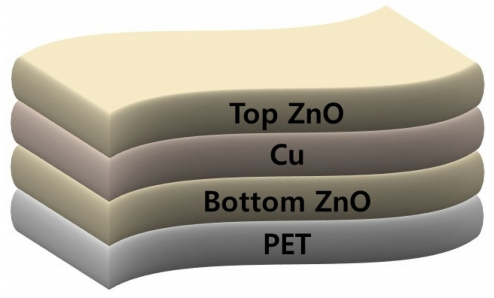 Schematic structure of ZnO/Cu/ZnO transparent electrode. The thickness of Cu layer