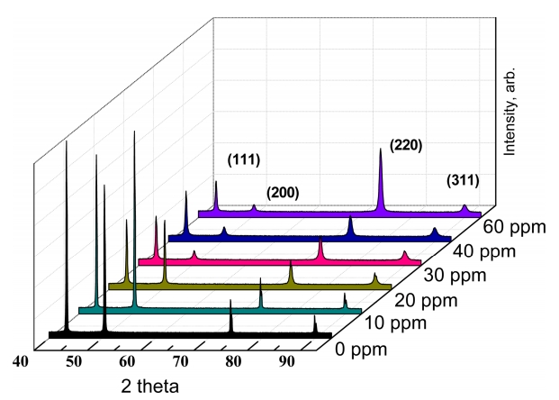 2. JGB 첨가제는 초기 핵생성과정에서 결정성장을 억제하고 핵생성을 촉진하여 표면에너지가 높은 (220) 방위로의 결정성을 촉진하고, 결정립 크기의