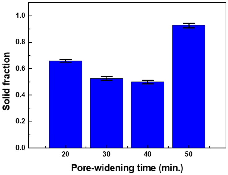 Variation of solid fraction according to pore-widening time.