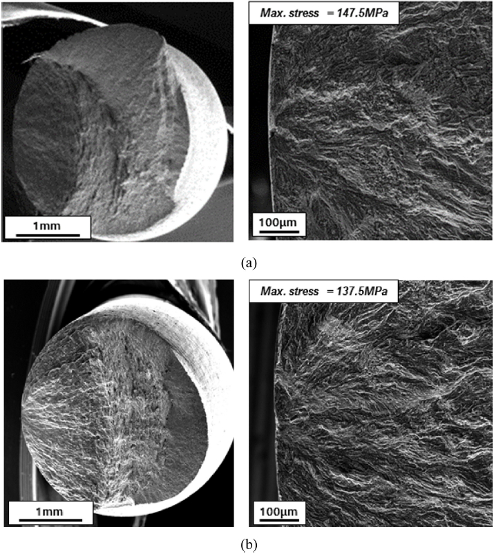 145 MPa์ ์๋ ฅ์์ ํ์ธ๋์๋ค. O ์์ฌ์ ๊ฒฝ์ฐ run out ๋ค์ 137.5 MPa, 135 MPa์ ์๋ ฅ์์ ๋ํ๋ฌ์ผ๋ฉฐ, ์ด์ฒ๋ฆฌ ํ run