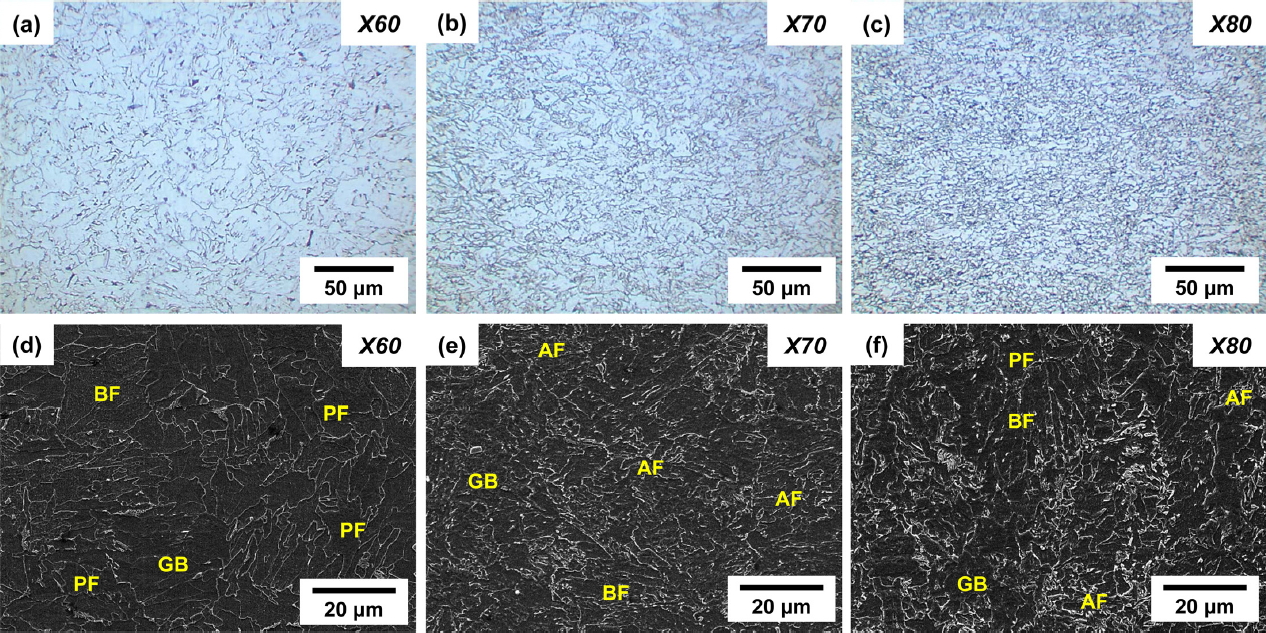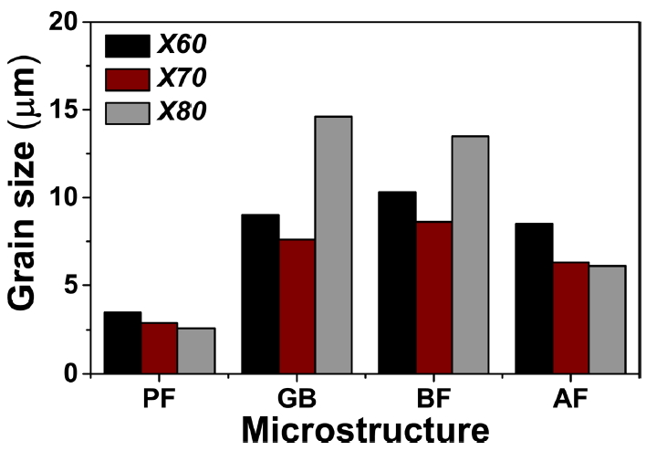 Microstructure fraction and effective grain size of the API X60, X70, and X80 pipeline