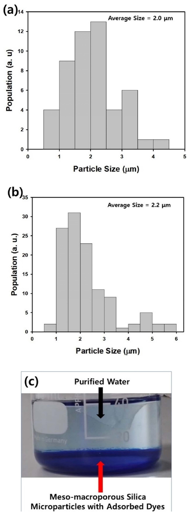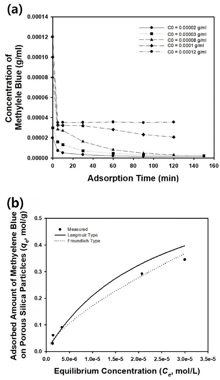 The macroporous or meso-macroporous silica microparticles shown in Figure 2 were used as an adsorbent in batch adsorber to remove the model contaminant, methylene